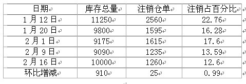 前几周库存量始终在下降,而本周库存总量有所上升,注销仓单小幅增加,变化不大,因此对后市锡价仍有较大压力。