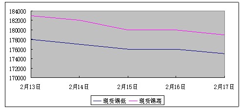 一周综述:本周伦锡一度下行,伦锡近期或将维持弱势震荡格局,待下周一欧元区财长会议对希腊第二次救援方案的决定。下周伦锡区间预计为 23000-25000美元。现货需求仍然疲弱,后期来看,现货仍有下行空间。下周市场运行区间看17-18万。建议锡锭及精矿暂观望,可少量买入。