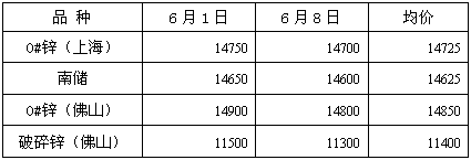 本周(6.4-6.8)宏观面疲软,市场关注希腊大选,结果未出之前市场保持谨慎态度。周五虽中国央行宣布降息,但未提振金属市场走势,据调研显 示,70%的锌下游行业均表示利好有限。至周五期锌收于14710,维持弱势,反弹未果。上海0#锌至周五报14800,最低报14650,较上周跌 50,现货锌表现抗跌,进口锌周五市场货源渐渐增多,周五兑主力贴水30-50附近,价格优势不明显。冶炼厂和贸易商均表现惜售,市场流通货源一般,下游 谨慎,逢低采购兴趣不大。市场表现胶着。
